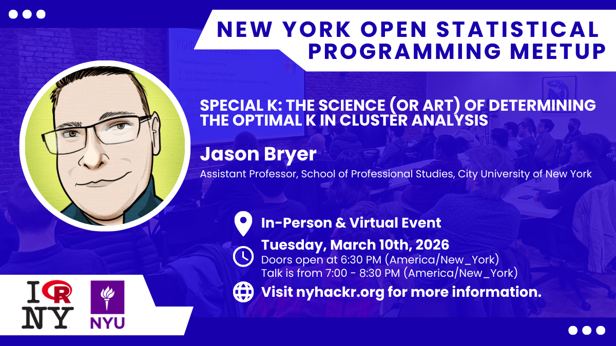 The CUNY School of Professional Studies, Data Science and Information Systems department, is hosting a talk by Jason Bryer titled Estimating Causality from Observation Data. You can attend the talk in person at 119 West 31st Street, NY, New York, 10001 or watch the live stream. Please complete this form indicating your interest. Details on attending live or getting the Zoom link will be sent to the email address provided. Light refreshments will be provided for those attending in person.